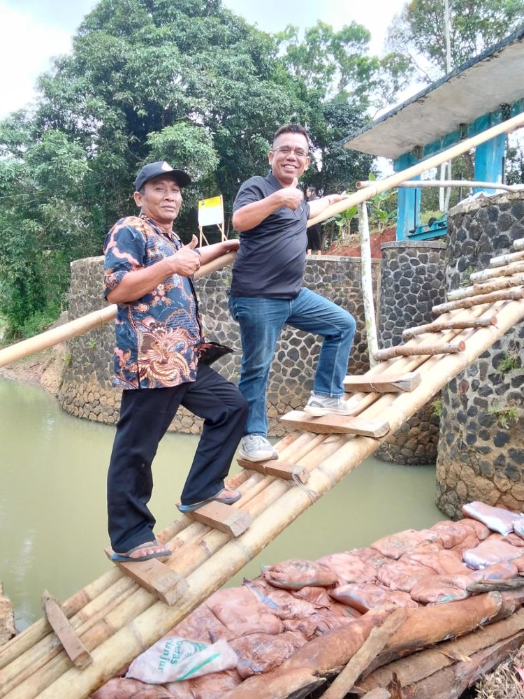SUKABUMI ~ Surahman juga kepala desa Citangklar kecamatan Surade kabupaten Sukabumi dan ketua Paguyuban Kepala Desa dan Perangkat Desa Pajampangan (PKPP) Surahman meninjau ke lokasi rehabilitasi atau perbaikan Bendungan Irigrasi Cikarang Cigangsa yang berada di Desa Kadaleman.