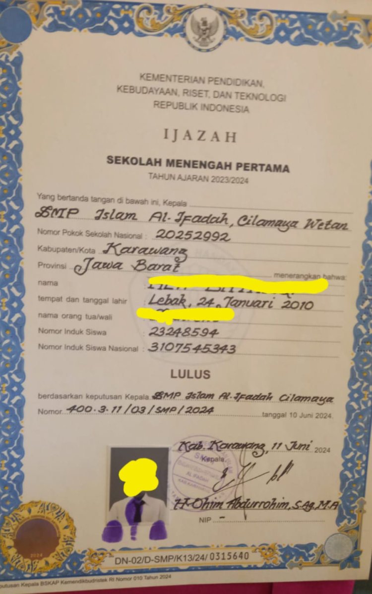 Kembali menjadi sorotan pendidikan berbasis islam tercoreng oleh ulah oknum Kepala SMP Islam Al Ifadah lulusan tahun 2025, memberikan ijazah tahun 2024 dengan alasan sesuai dapodik, sedangkan siswa tersebut lulusan MI tahun 2022, lulusan SMP nya 2024 harusnya lulusan tahun 2025, mengapa ini bisa terjadi dan untuk kepentingan apa?