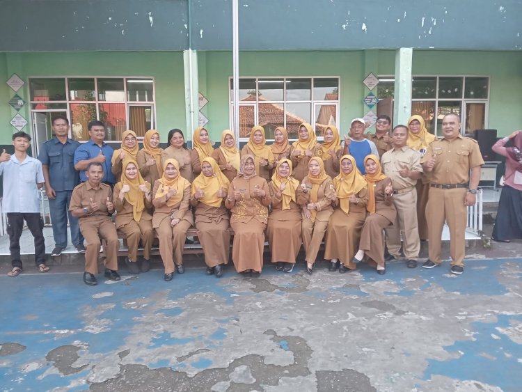 Pelepasan oleh Kepala sekolah Ibu Suhartatik,S.Pd,.M.Pd. bersama wali kelas 6 dan seluruh guru guru.