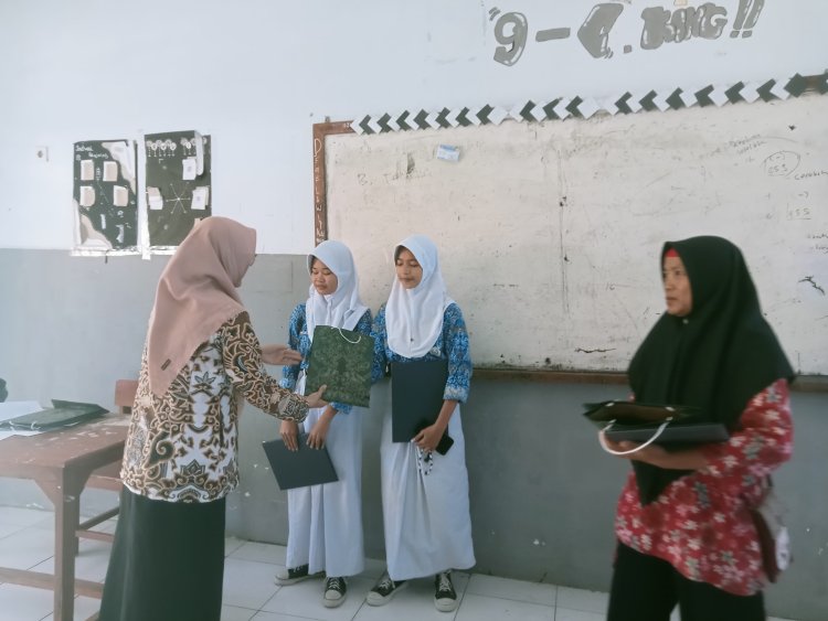 SOROTREPUBLIKA CIREBON| Guna Memotivasi Belajar Mengajar, Kepala Sekolah SMPN 2 Gebang, Hj.Uut Wahyuti, S. Pd.,M. Pd. Berikan Reward dan Hadiah Khusus Pada Saat Pembagian Raport Bagi Siswa Siswi Yang Berprestasi Tahun Ajaran 2024-2025. (26/06/2025)
