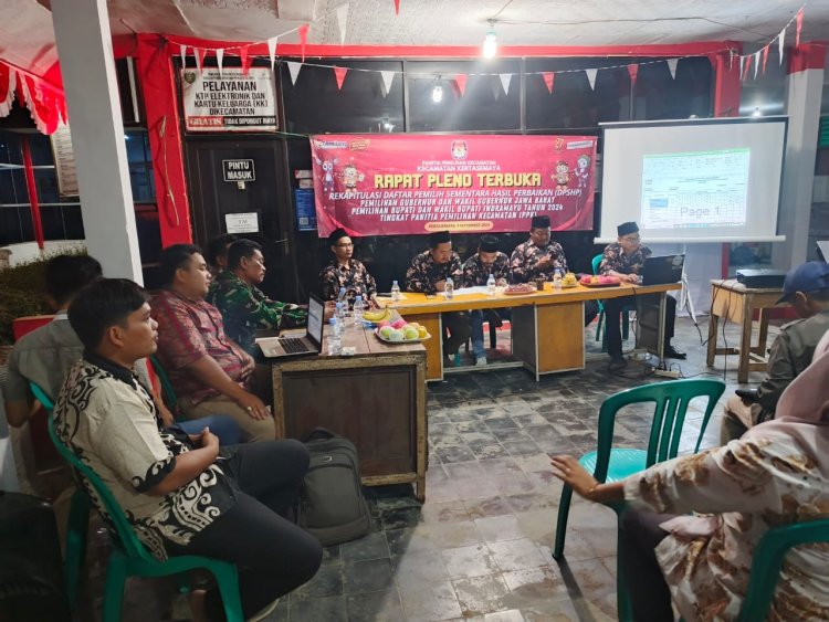 SOROTREPUBLIKA_ Panitia Pemilihan Kecamatan Kertasemaya kabupaten Indramayu menyelenggarakan Rapat Pleno Terbuka Rekapitulasi Daftar Pemilih Sementara Hasil Perbaikan (DPSHP) pada pemilihan Gubenur dan Wakil Gubenur, pemilihan Bupati dan Wakil Bupati Tahun 2024, Senin (9/9/2024).