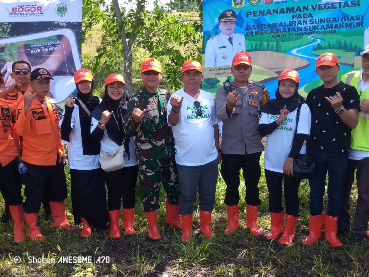 SUKAMAKMUR | Program penanaman pohon serentak di wilayah Kabupaten Bogor salah satunya penanaman pohon serentak dilaksanakan di Desa Pabuaran - Kecamatan Sukamakmur pada 21 November 2025 yang berlokasi di bantaran sungai Ciherang sekaligus area Kavlingan Internusa Ecopark.