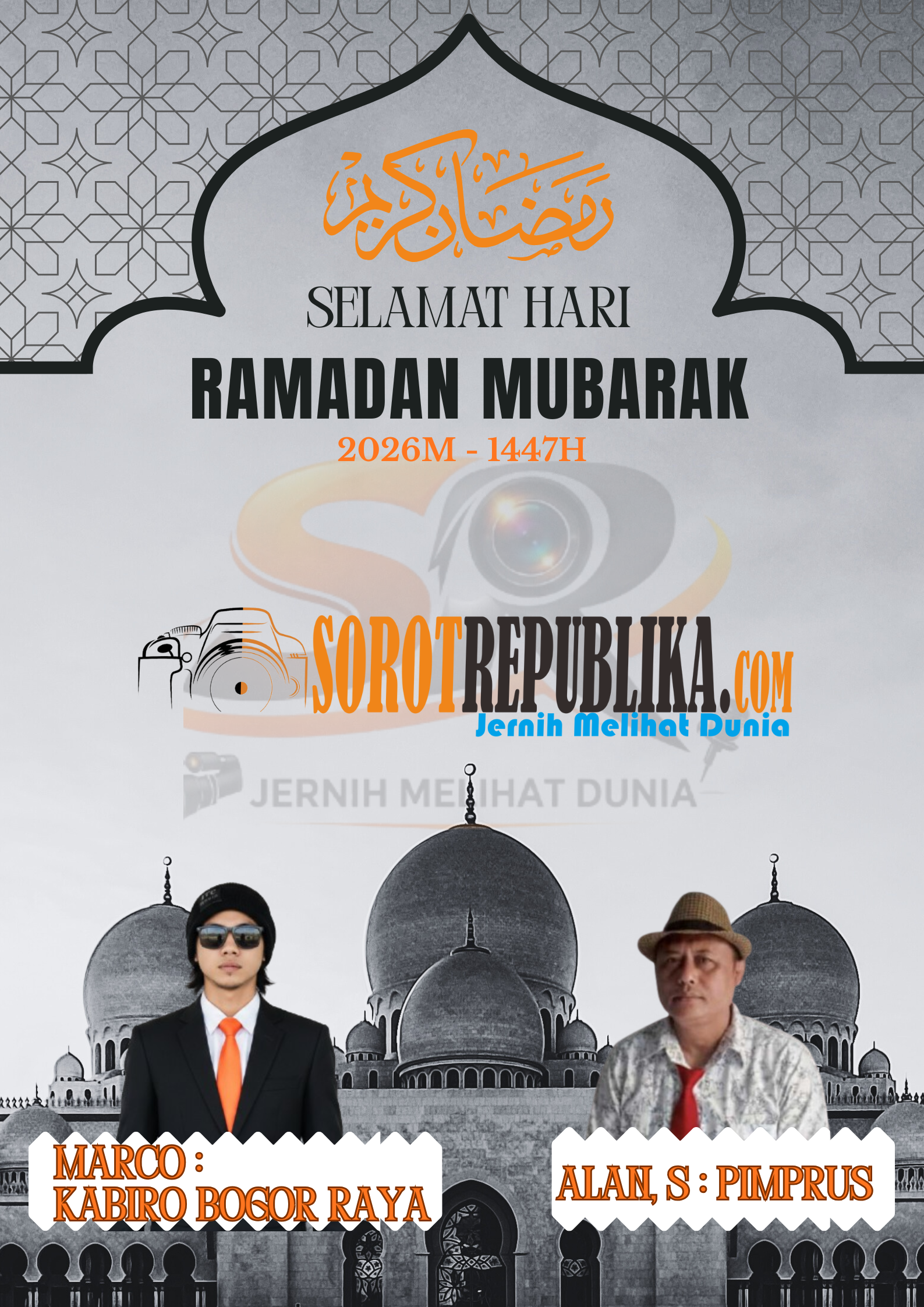 SOROTREPUBLIK.Com || Menyambut datangnya Bulan Suci Ramadhan 1447 Hijriah/2026 Masehi, Alan Somantri, Pimpinan Redaksi dan segenap jajaran media Sorotrepublika.com, menyampaikan ucapan selamat menunaikan ibadah puasa kepada seluruh masyarakat.(17/02/2024)