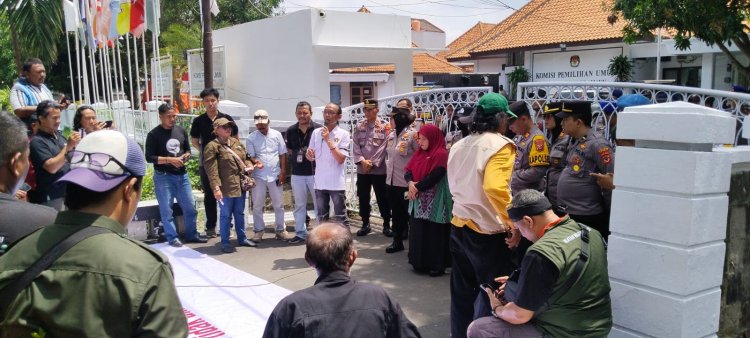 Dengan melakukan orasi dan membawa sejumlah spanduk, ratusan jurnalis itu menuntut KPU untuk mengkaji tindakan dari Lucky Hakim yang dinilai telah merendahkan profesi jurnalis.
