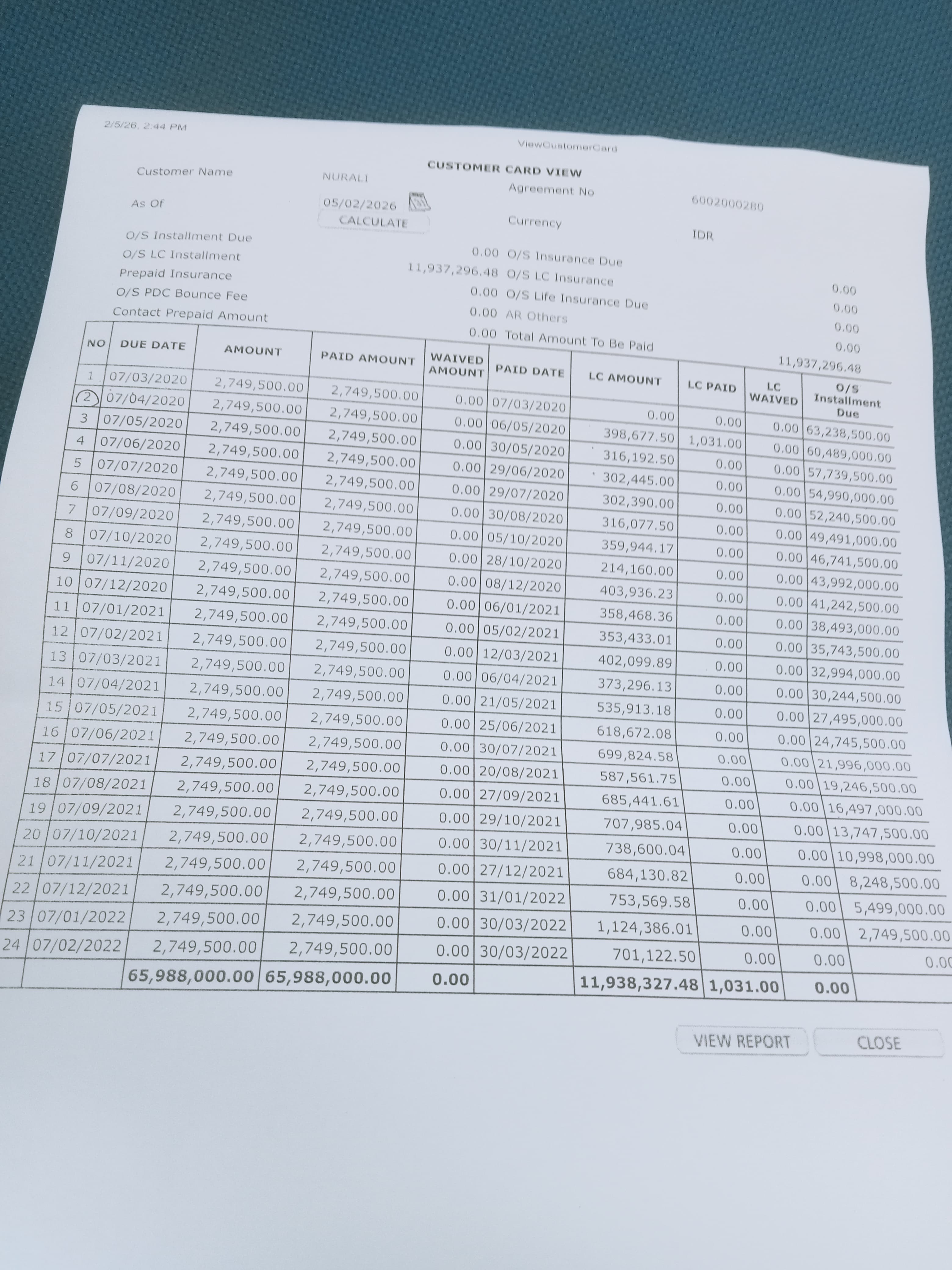 Dalam perjalanan Nurali secara rutin membayar angsuran sampai 24 kali paling telat hitungan hari setiap bulan bayar angsuran.
