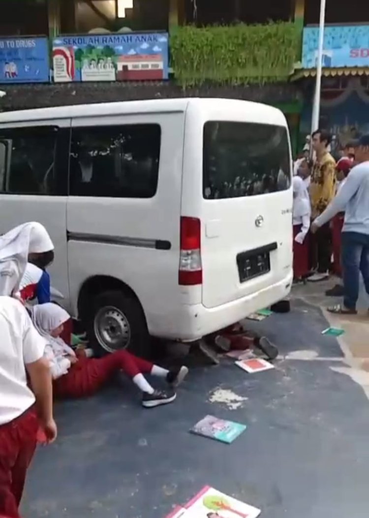 JAKARTA ~ Suara jeritan anak-anak terdengar saat sebuah mobil operasional makan bergizi gratis (MBG) terlihat di lapangan SD. Nahas, di kolong mobil berwarna putih itu terdapat sejumlah anak, kemudian orang dewasa yang berusaha mengangkat mobil.