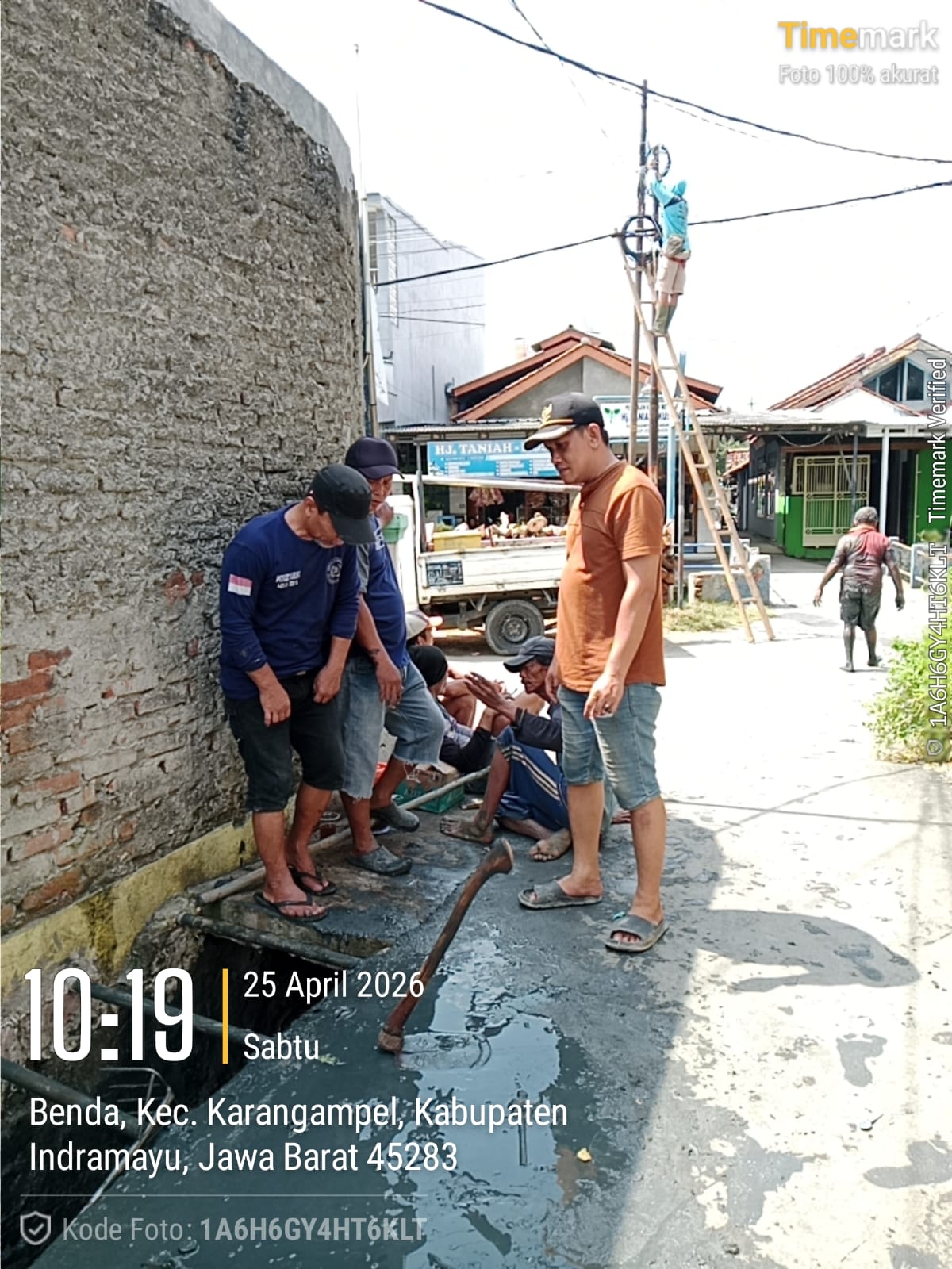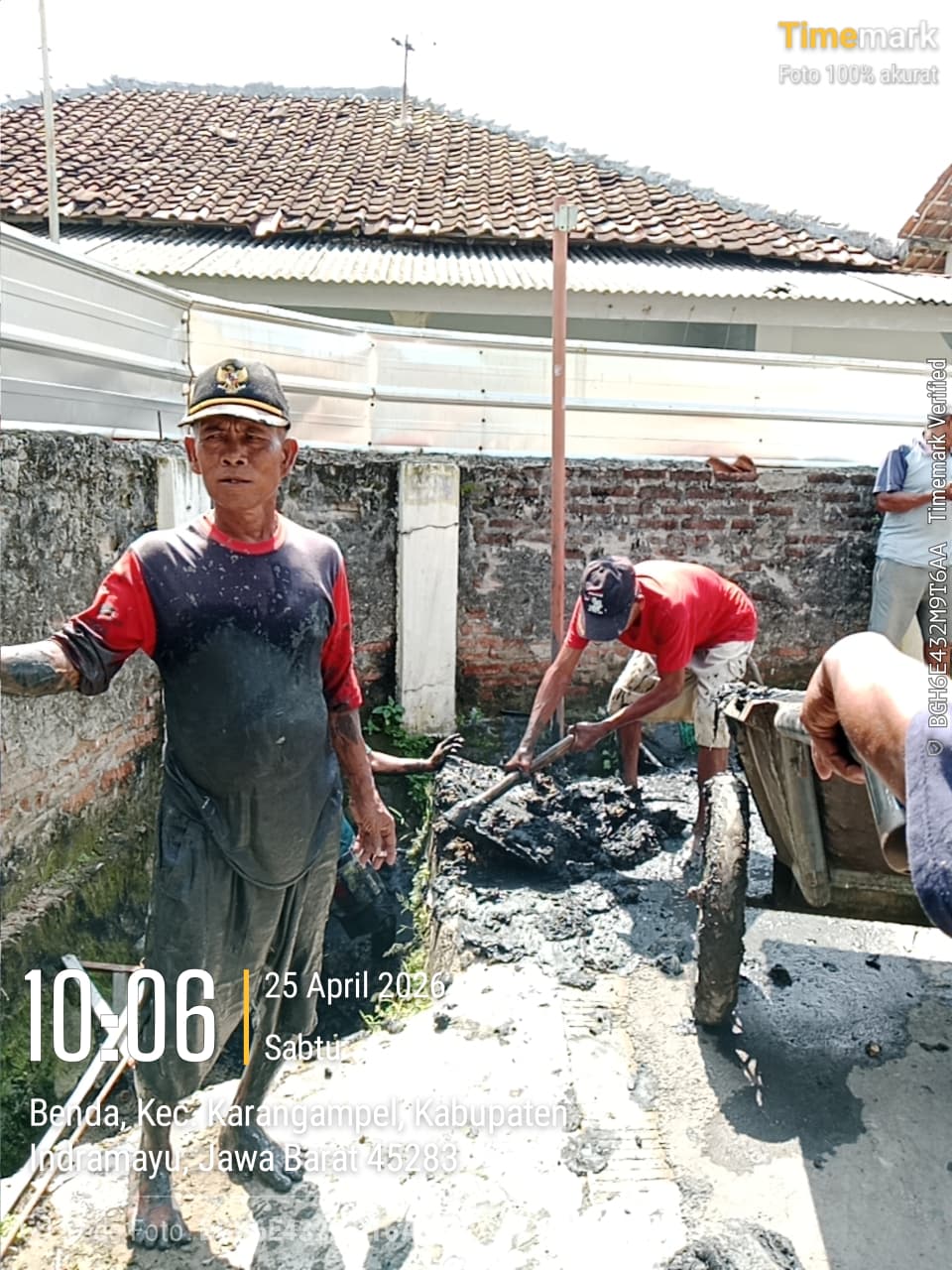 Sunedi Kuwu Karangampel turun langsung ke lokasi bersama bawahannya untuk membersihkan saluran air secara bergotong royong.