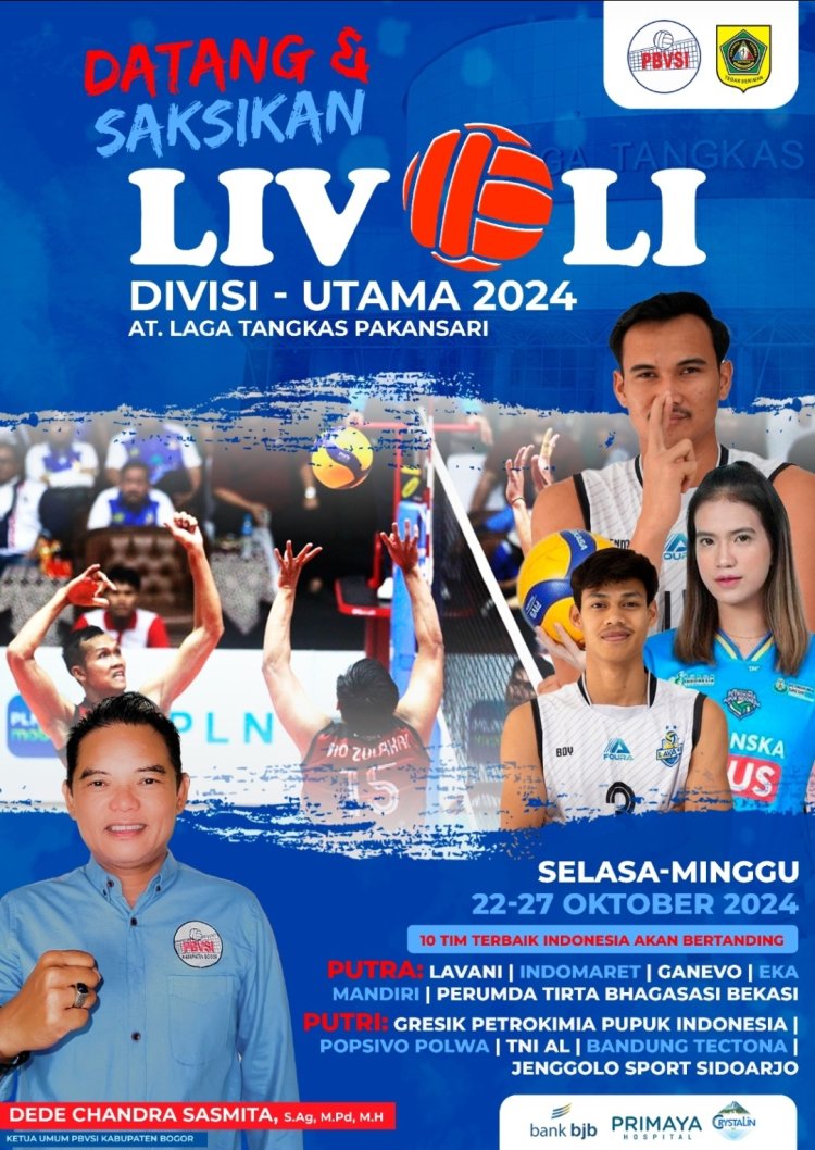BOGOR - sorotrepublika.com Ketua Persatuan Bola Voli Seluruh Indonesia (PBVSI) Kabupaten Bogor Dede Chandra Sasmita secara resmi membuka Event Liga Voli Indonesia (Livoli) Divisi Utama 2024.