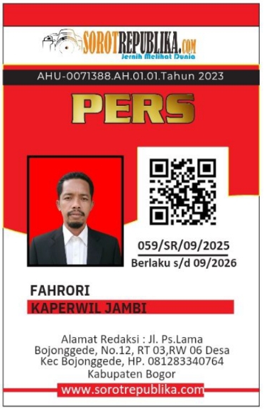 Berdasarkan hasil evaluasi Redaksi Media Sorotrepublika, com. maka di putuskan bahwa : Nama Fahrori, No. KTA : 059/SR/2025 masa berlaku s/d September 2026.