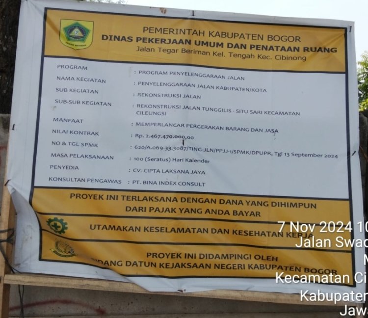 "Selesai dikerjakan hari Senin kemaren bang," ujar ST, Kamis 07 November 2024.