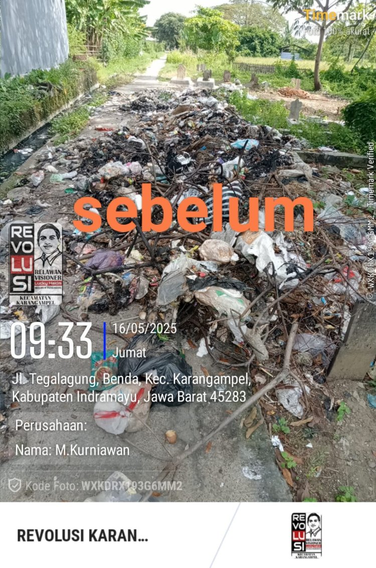 Team Revolusi Karangampel yang diketuai oleh Subagyo Wibisono cepat tanggap merespon keluhan yang ada di masyarakat, dan meminta ijin kepada Roshadian Purnama, S.H Camat karangampel untuk menanggapi isu tersebut, kemudian Tim Revolusi mengerahkan anggota nya kordes benda guna membersihkan sampah-sampah tersebut.